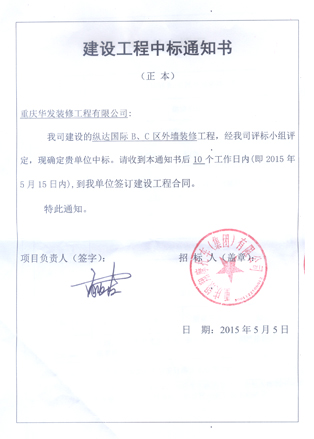 華發(fā)裝修中標重慶銀翔集團B、C區(qū)外墻裝修工程