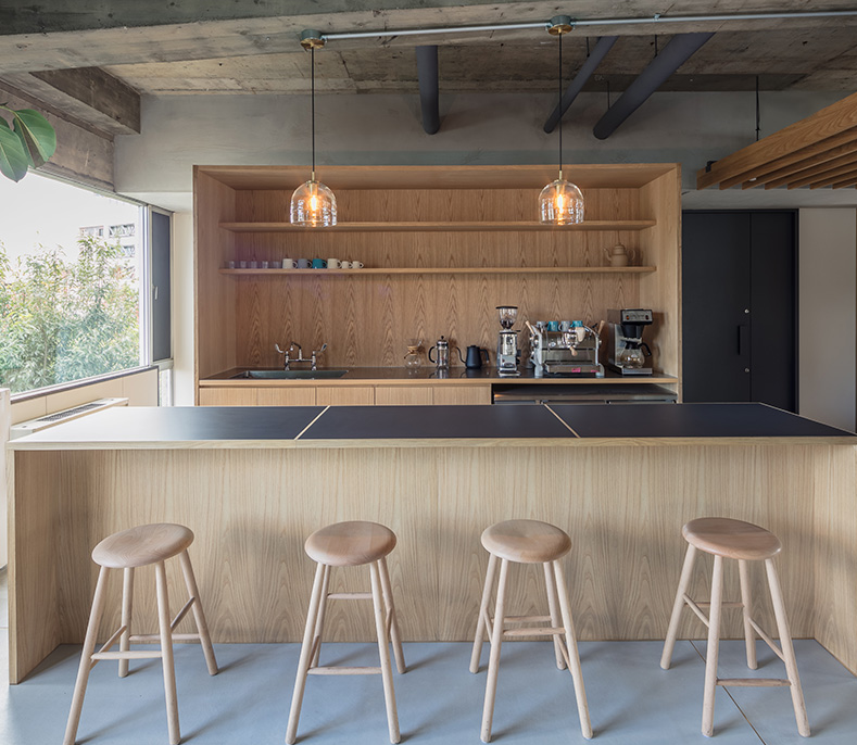 由于是工廠辦公室,辦公室裝修也保留了一些原始的樣子,裸露的水泥柱子就是典型的代表。