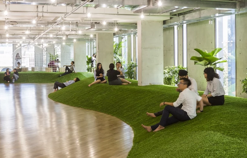 離工作地方不遠的地方,就是一個休閑區(qū),這是一種獨特的辦公室裝修設計。