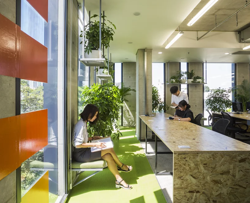 胡志明市這家旅游公司的越南辦事處進行的辦公室裝修設計中,為了能提高工作效率,打造了一個“綠色辦公室”,因為設計師相信用植物來裝飾空間,可以增強工作能力。下面一起跟著華發(fā)小編來看看這家辦公室裝修效果圖吧。