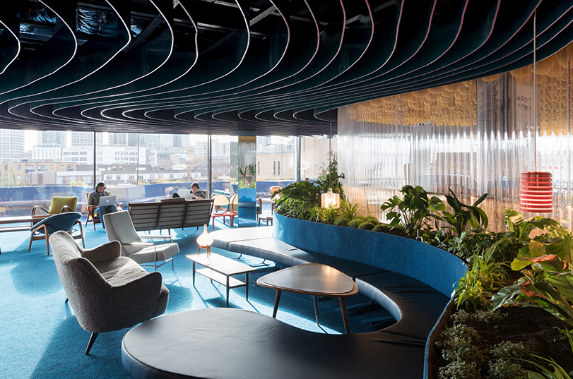 辦公室裝修中新的屋頂空間擴展了Selgascano在……上面第二家始建于2014年11月的Spitalfield大樓。新的空間有五個私人工作室,可容納多達150人的大型團隊(每個人都有自己的室外露臺),辦公室裝修還設有一個屋頂酒吧、一個文化場所和一個公共屋頂露臺,可以俯瞰整個倫敦。大型工作室的辦公室裝修內部天花板上覆蓋著10,000多頂彩色毛氈帽子,這些帽子提供隔音,以確保工作環境的寧靜。