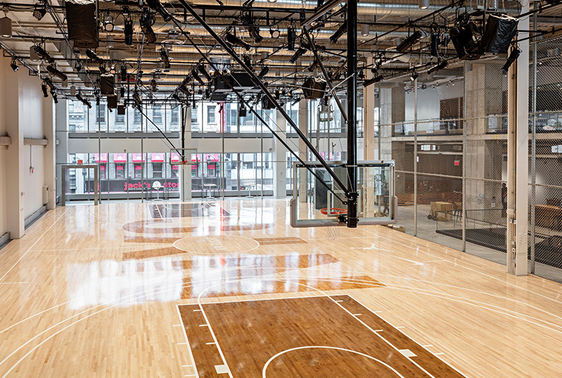 辦公室裝修里4000平方英尺的室內(nèi)籃球場不僅可以訪問NIKE贊助的運動員,如勒布朗詹姆斯,還可以參加當?shù)氐母咧嘘牶蜕鐓^(qū)合作伙伴。辦公室裝修一個90英尺長的NIKE'swoosh'位于總部的屋頂上,突出了該公司在國際體育界和紐約市社區(qū)的存在。