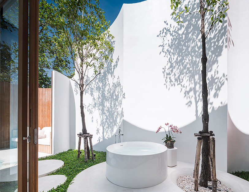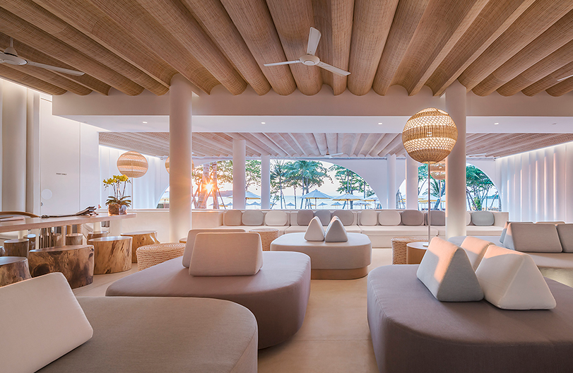 onion’s酒店裝修設計工作室決定在海灘旁留下最大的露天空間。這個庭院的功能就像一個明亮的客廳。沒有試圖控制血液循環??腿丝梢噪S心所欲地四處走走。圓圈是正確的。圓形游泳池周圍的沙發床和遮陽傘沒有方向。沒有特別的地方可以進入游泳池??腿丝梢宰冢呗?,躺在任何地方的任何地方,無論水位是什么姿勢。游泳池的地板逐漸向斜墻傾斜。